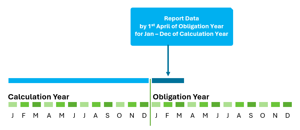 You will need to report your obligated packaging for the period of 1st Jan to 31st Dec.