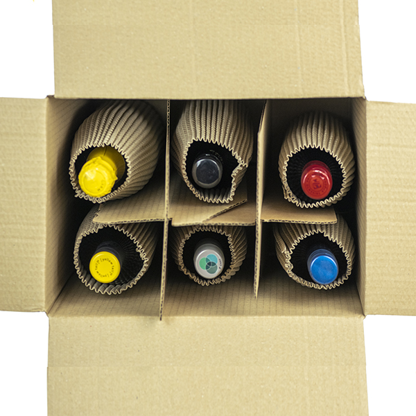If you are particularly cautious about transporting boxes of heavy or valuable bottles, some cushioning void fill can be used to surround the individual bottles within the partitioned areas.